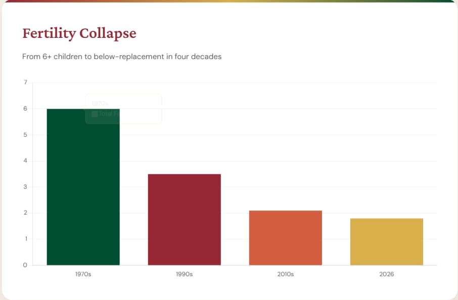 Bhutan now exhibits fertility rates comparable to South Korea or Italy, despite per-capita income one-fifth of those nations. Multiple factors drive this collapse: