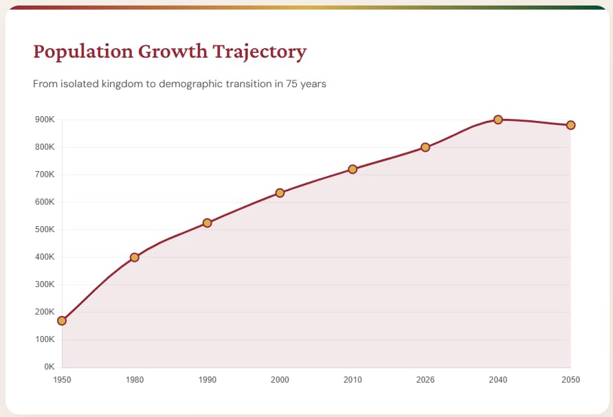 Bhutan’s population expanded more than fourfold since 1950, driven by mortality decline rather than fertility expansion or economic industrialization: